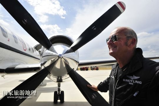 8月14日,在新疆克拉瑪依機(jī)場(chǎng),百年靈噴氣機(jī)隊(duì)隊(duì)長(zhǎng)雅克在保障機(jī)前向隊(duì)友致意。