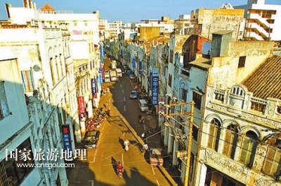 國(guó)家旅游地理 海南???月24日訊 ??隍T樓歷史文化街區(qū)(簡(jiǎn)稱(chēng)騎樓老街),是??谧罹咛厣慕值谰坝^。2009年6月10日,首屆“中國(guó)歷史文化名街評(píng)選推介”活動(dòng)在北京揭曉,??隍T樓老街榜上有名。??隍T樓老街以其唯一性、獨(dú)特性榮獲首批十大“中國(guó)歷史文化名街”稱(chēng)號(hào)。從2010年開(kāi)始,??谑幸褑?dòng)騎樓老街改造項(xiàng)目。海口騎樓老街已成為了解??诔鞘袣v史的活畫(huà)冊(cè)。
