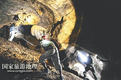 摘要: 這次發(fā)現(xiàn)的天然溶洞由前洞、后洞組成。前洞有水、旱兩洞,水洞在洞口處,十分狹小僅能由一人通過,斜向下5米處被亂石堆滿洞口,沿著亂石成堆的石頭,跨過一個巨大的鐘乳石,斜向上約3米有一洞窟約200米見方,石壁周圍布滿仙桃、石柱等形態(tài)各異的鐘乳石,頂