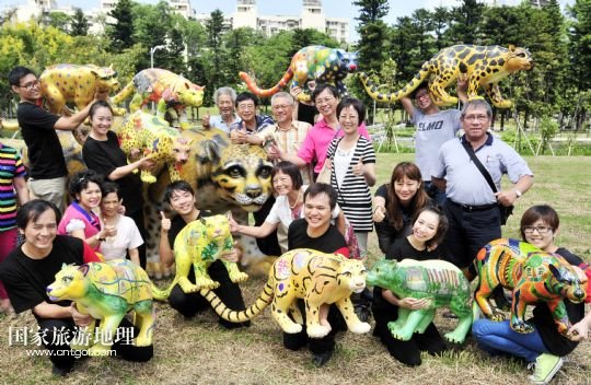 國家旅游地理 臺(tái)灣臺(tái)北9月18日訊 9月17日,人們?cè)谂_(tái)北市青年公園的云豹彩繪活動(dòng)上合影。當(dāng)日,臺(tái)北市青年公園舉行“記憶與重生——臺(tái)北市青年公園公共藝術(shù)計(jì)劃”活動(dòng),讓市民們彩繪出自己心中已經(jīng)滅絕的臺(tái)灣云豹的模樣,以此呼吁環(huán)保。 /新華社發(fā)(吳景騰 攝)