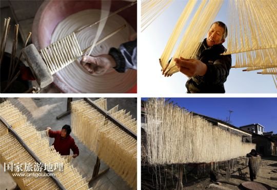 國(guó)家旅游地理 江西九江12月30日訊 12月30日,江西省都昌縣左里鎮(zhèn)秦家圈村村民在制作手工拉面。年節(jié)臨近,位于鄱陽(yáng)湖畔的江西省都昌縣左里鎮(zhèn)秦家圈村的村民們忙著制作手工拉面。