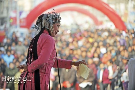 國(guó)家旅游地理 1月2日訊 2014年1月2日,在安徽省亳州市譙城區(qū)十河鎮(zhèn),演員在表演亳州非遺劇種“二夾弦”。當(dāng)日,安徽省亳州市譙城區(qū)2014年“三下鄉(xiāng)”活動(dòng)啟動(dòng),當(dāng)?shù)蒯t(yī)療、文化、科技部門(mén)的“三下鄉(xiāng)”服務(wù)隊(duì)到基層開(kāi)展文化、衛(wèi)生、科技、法律下鄉(xiāng)活動(dòng),為基層群眾送上新年的問(wèn)候。 /新華社發(fā)(張延林 攝)