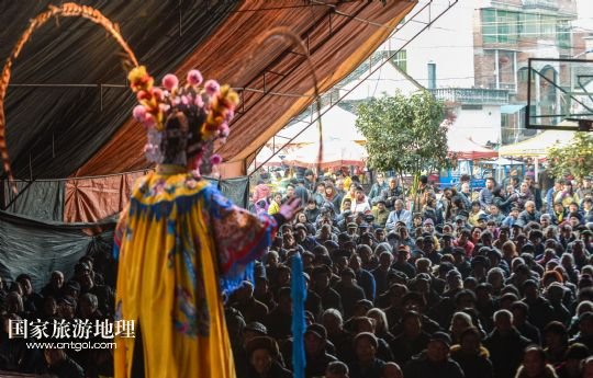 國家旅游地理 浙江金華1月3日訊 1月3日,武義壺山婺劇團(tuán)在武義縣三板橋村演出,此次演出要連演3天。新年伊始,浙江省金華市武義縣的各個鄉(xiāng)鎮(zhèn)迎來了熱鬧的“婺劇迎春”,通過政府、企業(yè)、百姓多方出資的方式,邀請數(shù)十支婺劇團(tuán)在武義各個鄉(xiāng)鎮(zhèn)演出, 幾乎場場爆滿。
