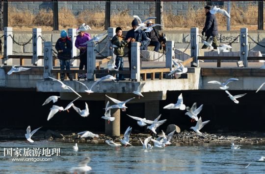 國家旅游地理 河北秦皇島1月13日訊 1月12日,一群海鷗在秦皇島市海港區(qū)新開河入??谔幰捠场kS著氣溫不斷下降,在秦皇島沿海一線越冬的海鷗開始飛到市區(qū)內(nèi)的河道覓食,為冬日里的秦皇島市區(qū)增添了生機。 /新華社記者楊世堯攝