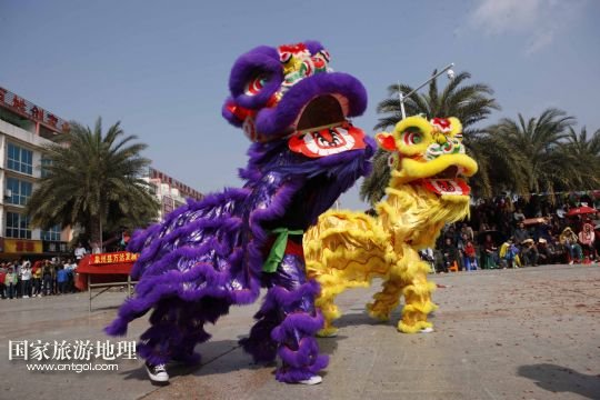 國(guó)家旅游地理 廣西來賓2月5日訊 2月4日,廣西象州縣的農(nóng)民舞獅隊(duì)在參加獅王爭(zhēng)霸賽。春節(jié)期間,廣西壯族自治區(qū)來賓市象州縣舉行獅王爭(zhēng)霸賽,來自該縣的32支農(nóng)民舞獅隊(duì)一展技藝、爭(zhēng)奪獅王,為當(dāng)?shù)厝罕姭I(xiàn)上一場(chǎng)精彩的民俗文化大餐。 /新華社發(fā)(龔堅(jiān) 攝)