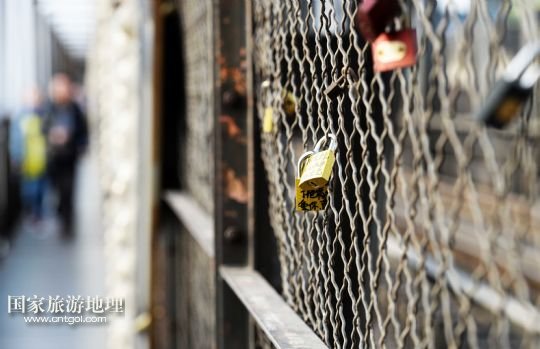哈爾濱濱洲鐵路橋上的每一對(duì)銅鎖都記錄著一段愛情(4月19日攝)。