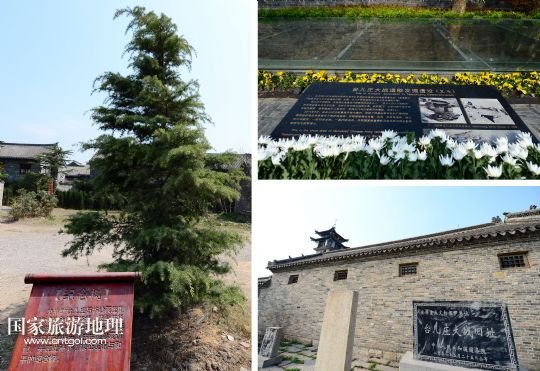 位于臺(tái)兒莊古城的臺(tái)兒莊大戰(zhàn)指揮所(左上)、民居(左下)和清真寺內(nèi)柏樹(右)上,仍保存著當(dāng)年臺(tái)兒莊大戰(zhàn)中留下來(lái)的彈孔(拼版照片,4月8日攝)。