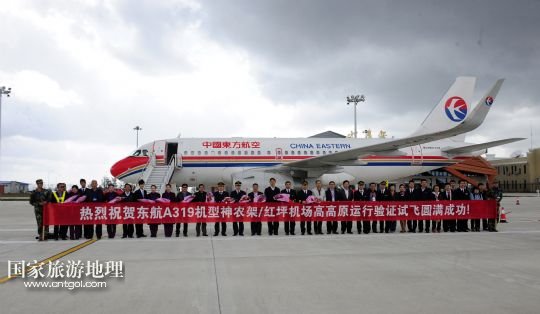 國(guó)家旅游地理 湖北神農(nóng)架4月28日訊 4月28日,試飛成功后機(jī)組人員在飛機(jī)前合影留念。當(dāng)日,東航A319機(jī)型在神農(nóng)架紅坪機(jī)場(chǎng)通過(guò)高高原運(yùn)行驗(yàn)證,試飛成功。神農(nóng)架機(jī)場(chǎng)海拔高度2580米,是華中地區(qū)海拔最高的機(jī)場(chǎng),將于5月8日正式通航,首飛東方航空公司的上海—武漢—神農(nóng)架航線。從武漢到神農(nóng)架的旅途時(shí)間將由過(guò)去乘汽車(chē)9小時(shí)縮短至50分鐘。 /新華社記者 郝同前攝