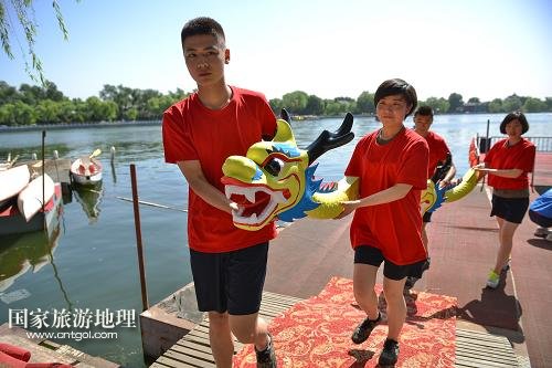 國(guó)家旅游地理 北京5月28日訊 5月28日,龍舟賽開(kāi)始前,工作人員按照傳統(tǒng)儀式將“神龍”請(qǐng)上碼頭點(diǎn)睛。當(dāng)日,北京什剎海街道舉辦迎端午節(jié)系列活動(dòng),通過(guò)賽龍舟和纏繒子、吆喝表演等豐富多彩的民俗文化活動(dòng),讓端午節(jié)的傳統(tǒng)習(xí)俗回歸百姓生活,彰顯什剎海地區(qū)民俗文化的特色。新華社記者 李鑫 攝