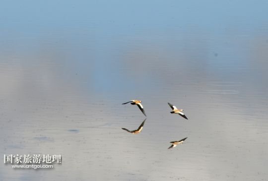 6月18日,水鳥(niǎo)在莽措湖上飛翔。