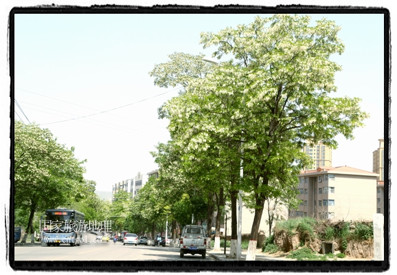 國(guó)家旅游地理 甘肅平?jīng)?月31日訊(通訊員 鄭兵 攝影報(bào)道)日前,甘肅省平?jīng)鍪谐菂^(qū)各大主要街道兩旁的槐樹(shù)開(kāi)滿花朵,一簇一簇,一串一串,白的像雪,美得像畫,冰肌綽約,清素高雅,滿街道彌漫著槐花的馥郁香氣,讓來(lái)往的行人為之陶醉。宋朝大文豪蘇東坡曾有詩(shī)云:“槐林五月蕩瓊花,郁郁芬芳醉萬(wàn)家。”據(jù)悉,槐花除了觀賞意外,用槐花做的湯飯還有開(kāi)胃解毒瀉火等功效,是食藥兩用的的極品,被譽(yù)為“天賜的禮物”。