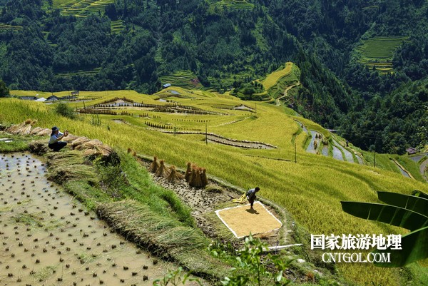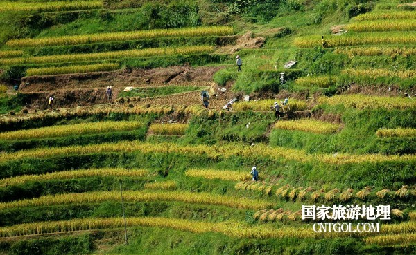 國(guó)家旅游地理貴州黔東南9月6日訊(龍夢(mèng)前 攝影報(bào)道)9月5日,貴州省黔東南苗族侗族自治州從江縣加榜鄉(xiāng)黨扭村、加頁(yè)村和加車(chē)村萬(wàn)畝水稻開(kāi)鐮收割。