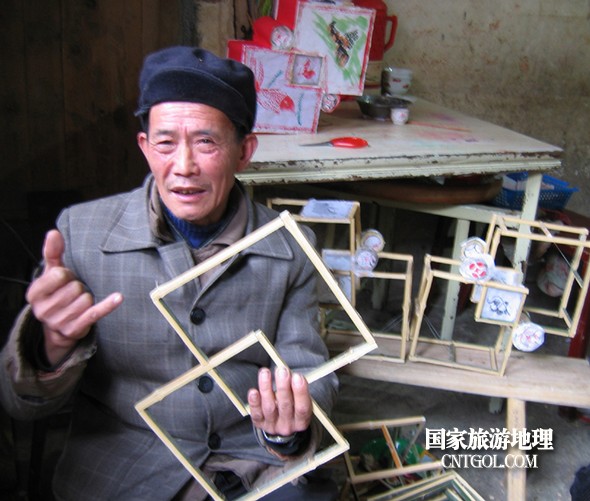 年逾六旬的老藝人在扎制慶燈。鄒善水 攝